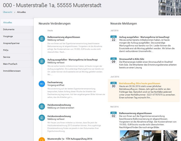 - Wichtige Vorgänge, wie Modernisierungen einfach online verfolgen und immer auf dem neusten Stand sein.
